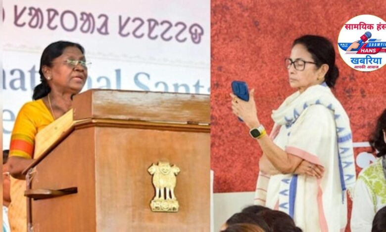 राष्ट्रपति द्रौपदी मुर्मू शनिवार को 9वें अंतरराष्ट्रीय संथाल कॉन्फ्रेंस में शामिल होने पश्चिम बंगाल के दार्जिलिंग पहुंचीं. इसके बाद द्रौपदी मुर्मू सिलीगुड़ी उपमंडल के बिधाननगर पहुंचीं. जहां उन्होंने पश्चिम बंगाल की मुख्यमंत्री ममता बनर्जी के प्रति अपनी नाराजगी जताई. राष्ट्रपति ने कहा कि उन्हें मेरे कार्यक्रम में साथ होना चाहिए था.