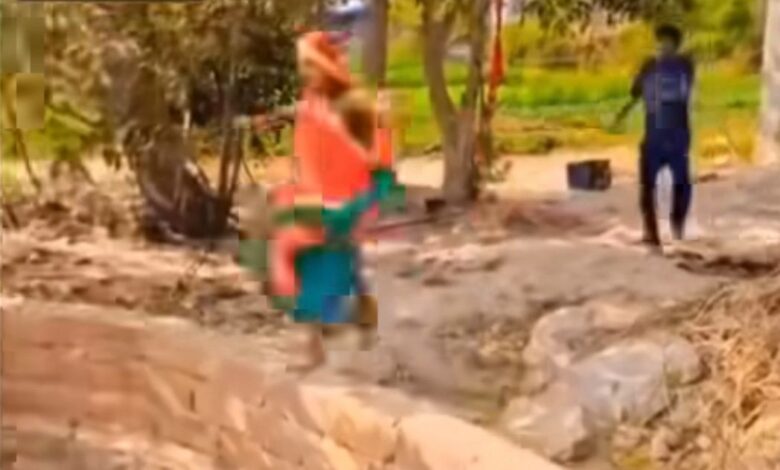 बचाव का प्रयास: महिला पानी में डूबने लगती है, जिसके बाद पति उसे पकड़कर खींचने की कोशिश करता है और पास लटक रही रस्सी से वह जान बचाने का प्रयास करती है।