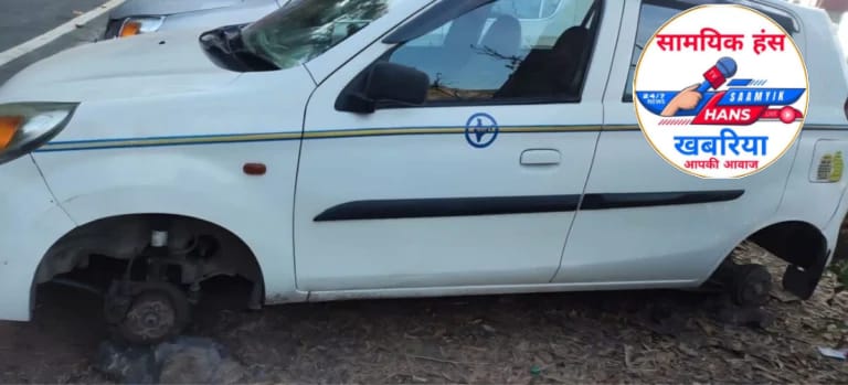 नैनीताल-उत्तराखण्ड में नैनीताल के गेठिया में रात को खड़ी एक टैक्सी कार के तीन चक्के(टायर)चोर उड़ा ले गए। पुलिस ने शिकायत के बाद जांच शुरू कर दी है।