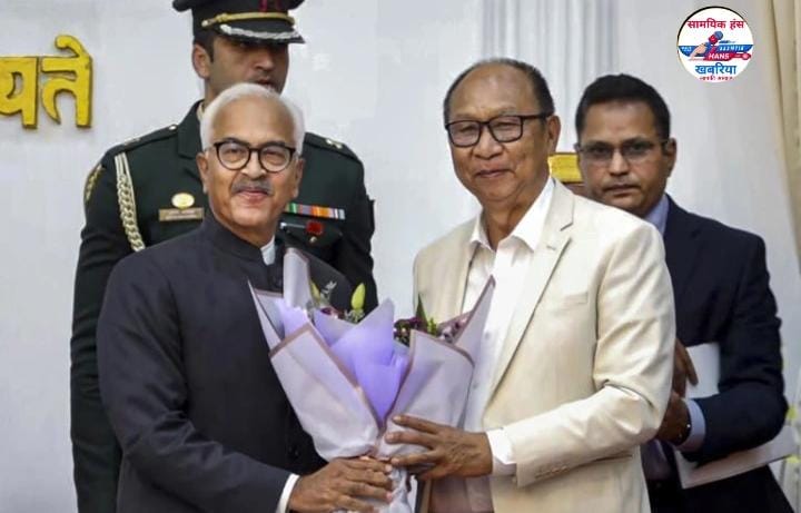 बीजेपी के खेमचंद सिंह ने मणिपुर के CM के तौर पर शपथ ली; कुकी और नागा समुदायों से 2 डिप्टी CM बने।