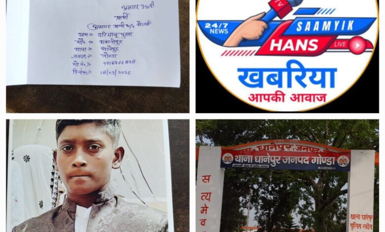 गोंडा जिले अंतर्गत थाना धानेपुर क्षेत्र में एक बच्चा जो मदरसा में पढाई कर रहा था छुट्टी लेकर घर जाने की बात कहकर मदरसे से निकला था लेकिन घर न पहुंचने पर अनहोनी की आशंका से परेशान पिता ने थाना धानेपुर में गुमशुदगी का प्रार्थना पत्र देकर पुलिस से गुमशुदगी दर्ज कर गायब बालक को खोजने की मांग की।