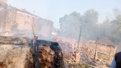 अज्ञात कारणों से लगी आग से लगभग एक दर्जन के घर व एक भैंस झुलसी लाखों का नुकसान