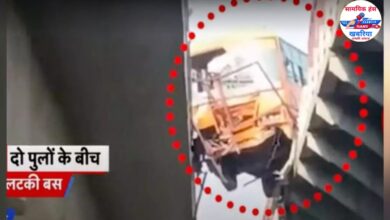 यूपी रोडवेज़ की बस दिल्ली जाते समय अचानक रेलिंग तोड़ गंगा पुल पर हवा में आधी लटकी।